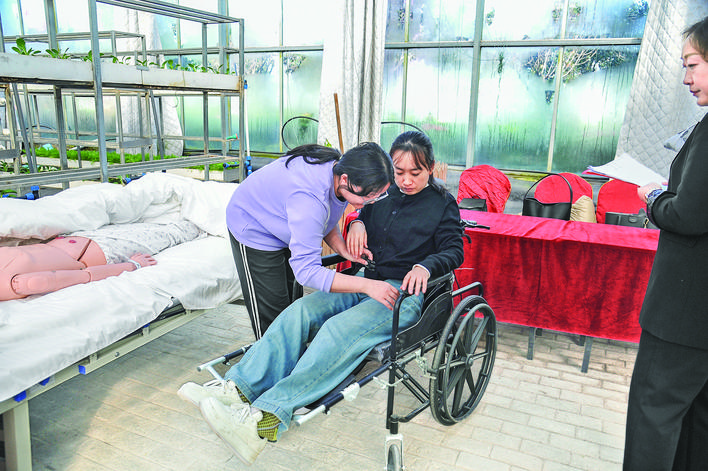 蔬菜农技工熟练地使用工具嫁接两种菜苗;养老护理工模拟照料老人场景,进行口腔护理、穿脱衣、关节被动康复训练;新绛月嫂在婴幼儿照护模拟情境中进行沐浴、抚触、喂养。参赛选手有未出校门的职业技能专业学生,也有从业多年的行业好手,大家在智慧种植、科学育儿、健康照护的实操比拼中,切磋技艺、突破自我。各项目评委也认真按照评分要点进行打分。