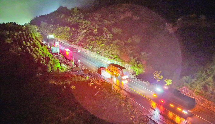 ◀垃圾清运车夜间行驶在中心城区至夏县庙前镇运城市生活垃圾焚烧发电厂的山路上