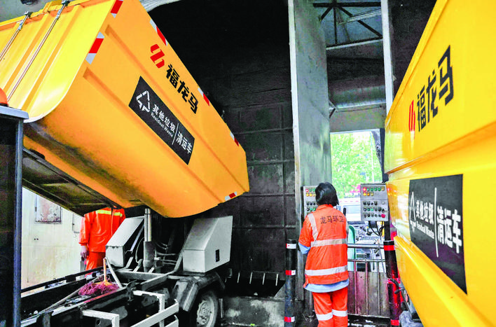 ▶潞村街垃圾中转站是中心城区最大的站点,每天吞吐垃圾230余吨。