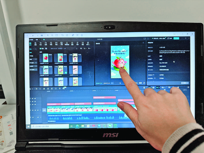 最后一步是剪映剪辑,将生成的图片和视频素材导入剪映软件,添加合适的音乐、音效和字幕,一段完整的英语磨耳朵绘本短视频就制作完成了。“字幕要准确对应英语句子,音乐选择轻快舒缓的儿童曲目,音效可以加入水果掉落、自行车铃铛等声音,让内容更生动有趣。”菜菜妈妈分享了自己的剪辑心得。