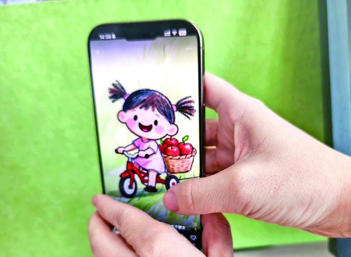 视频生成环节同样借助豆包完成,虽然每日生成次数有限,但适合出图量较少的创作要求,只需点开满意的图片,选择“生成视频”功能,输入简单的视频提示词即可,“其实就是‘看图说话’,比如小女孩骑着自行车,就输入‘小女孩骑着自行车,镜头跟随’,操作非常简单”。菜菜妈妈表示,若首个镜头设置为动态,其余镜头用静态图片也能达到不错的传播效果,可根据实际需求灵活调整。