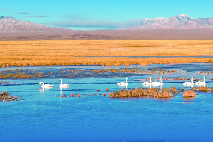 初冬时节,作为候鸟迁徙的中亚通道和东亚-澳大利亚通道两条线路的重要中转站,河西走廊吸引了大量候鸟在此停歇休憩、越冬栖息。