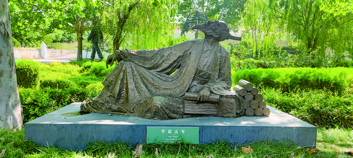 ▲夏县宇达青铜文化产业园“学富五车”雕塑 记者 刘亚 摄