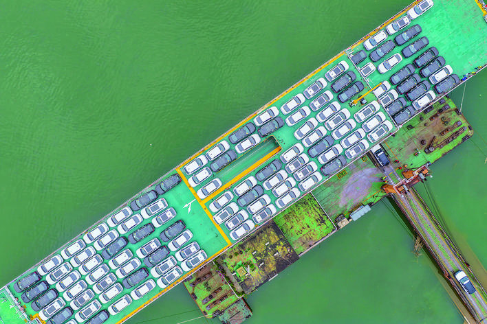 ▲12月5日,在重庆果园港滚装码头,“重庆造”新能源汽车在装船,之后将通过“江海联运”的方式出海。 近年来,随着重庆内陆开放综合枢纽建设不断提速,越来越多的“重庆造”汽车沿着出海大通道走向世界。当前,重庆在纯电动、插电式、增程式、氢燃料等多种技术路线全面布局汽车产业,不断完善的产业链条、持续提升的产品品质等,成为支撑“渝车出海”的重要因素。重庆海关日前公布数据显示,今年前10个月,重庆汽车出口402.2亿元,同比增长13.6%。其中电动汽车出口116.5亿元,同比增长72.1%。新华社记者 黄伟 摄