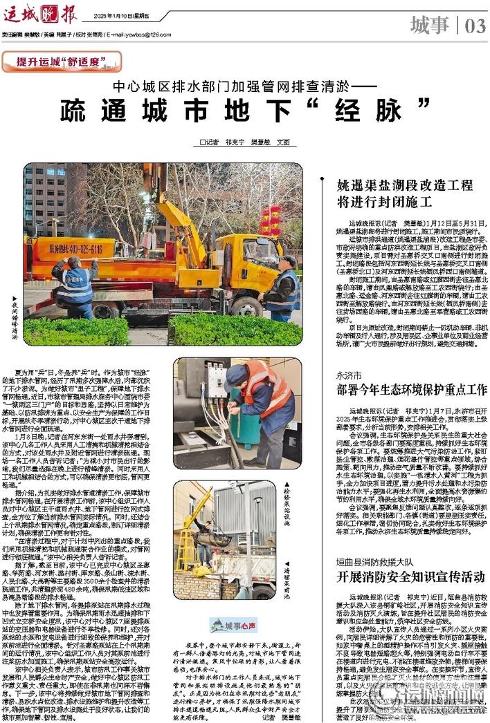 夏为用“兵”日,冬是养“兵”时。作为城市“经脉”的地下排水管网,经历了汛期多次强降水后,内部沉积了不少淤泥。为做好城市“里子工程”,保障地下排水管网畅通,近日,市城市管理局排水服务中心围绕市委“一城两区三门户”的目标和思路