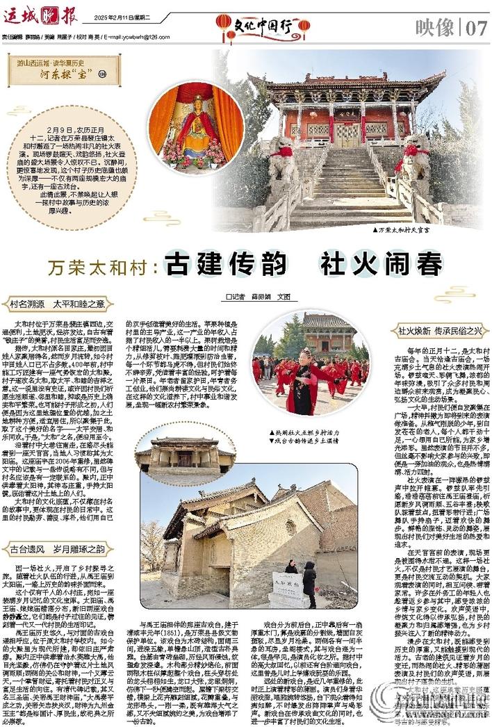 运城晚报讯(记者 孔雄 赵泽艳)蛇年最“宵”遥,快乐不停歇。2月8日、9日(农历正月十一、正月十二),每天13时30分至17时30分,河东池盐文化博览园在中禁门北广场搭建“东方有戏”大舞台,邀请广大票友同台比拼、各展风采,