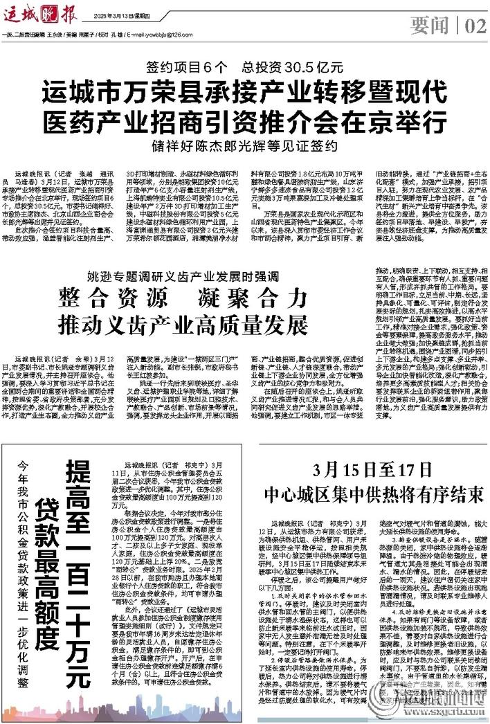 运城晚报讯(记者 祁克宁)3月12日,从运城市热力有限公司获悉,为确保供热机组、供热管网、用户采暖设施安全平稳停运,按照相关规定,经中心城区集中供热保障领导组研判,3月15日至17日陆续结束本采暖季中心城区集中供热工作。<