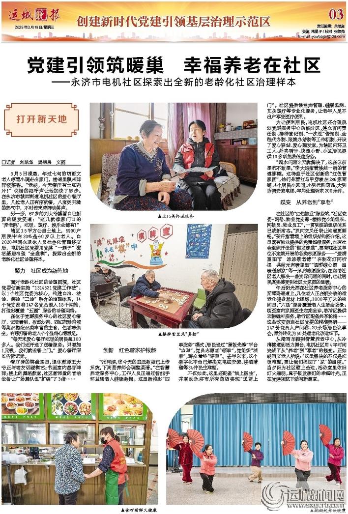 3月5日清晨,年过七旬的胡雨文老人哼着小调走出家门,楼道里飘来阵阵饭菜香。“老胡,今天餐厅有土豆肉片!”邻居的招呼声让他加快了脚步。在永济市城西街道电机社区的爱心餐厅里,几