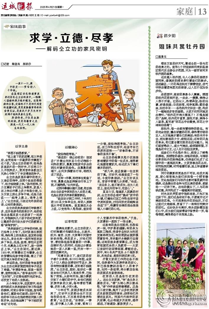 在盐湖区安邑街道黄家卓村居民仝立功的家中,一幅精心装裱的照片格外醒目。这张特殊的合影,定格的不只是四代同堂的温馨时刻,更是家族教育传承的珍贵见证,是家风于岁月长
