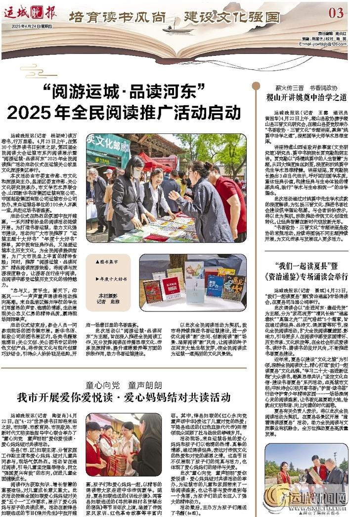 运城晚报讯(记者 景斌)“书籍,是心灵的灯塔,在迷茫时为我们照亮前行的道路,让我们在人生的海洋中找到正确的航向……”4月20日,在充满文化气息的鼎鑫华府小区大戏台上,一场由社区、学校和企业联合开展的“书香运城”阅读季主题活
