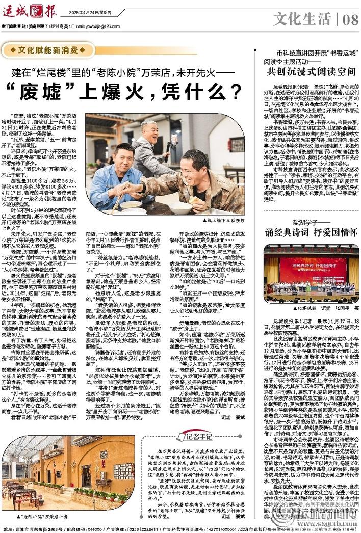 “陈哥,咱这‘老陈小院’万荣店啥时候开业了,给我订上一桌。”4月21日11时许,正在做最后冲刺的老陈,收到了这样一条微信。