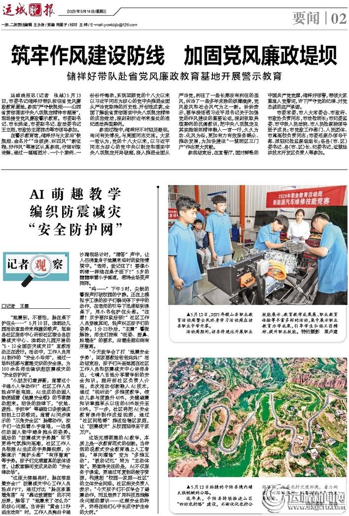 运城晚报讯 5月12日,闻喜县行政审批服务管理局涉农股工作人员来到该县河底镇,开展年度农机审检下乡服务(右图)。