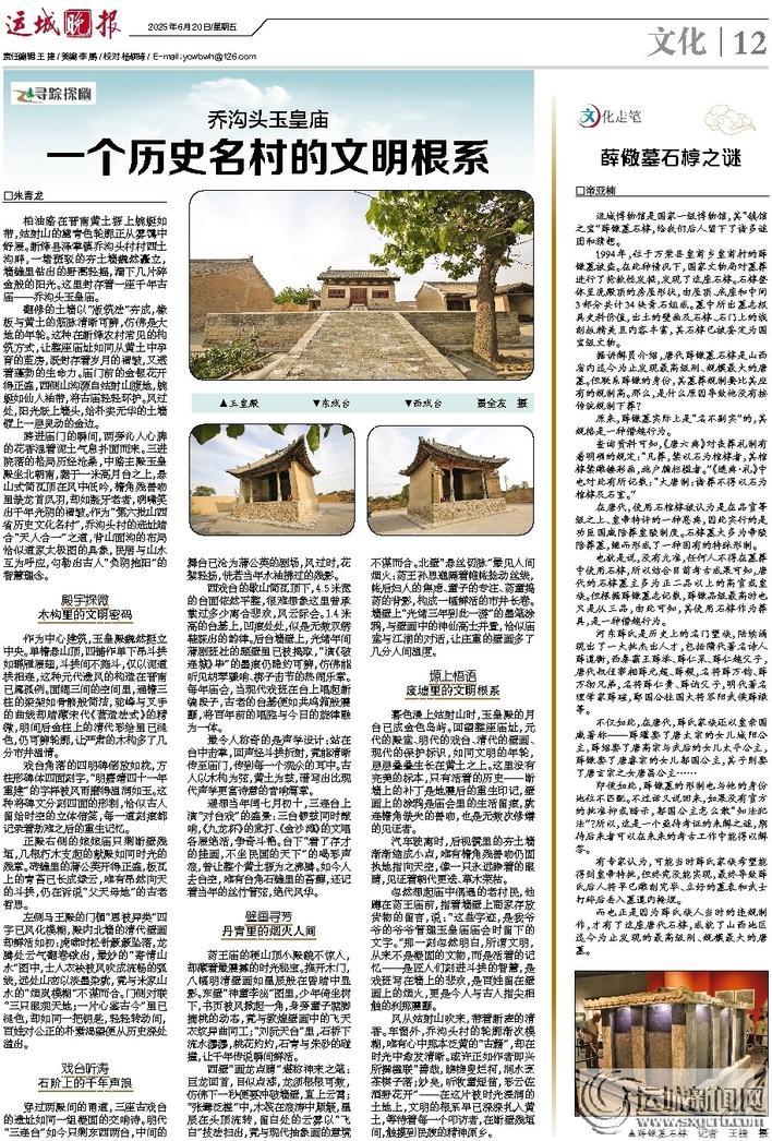 柏油路在晋南黄土塬上蜿蜒如带,姑射山的黛青色轮廓正从雾霭中舒展。新绛县泽掌镇乔沟头村村西土沟畔,一堵斑驳的夯土墙巍然矗立,墙缝里钻出的野蒿轻摇,漏下几片碎金般的阳光。这里封存着一座千年古庙——